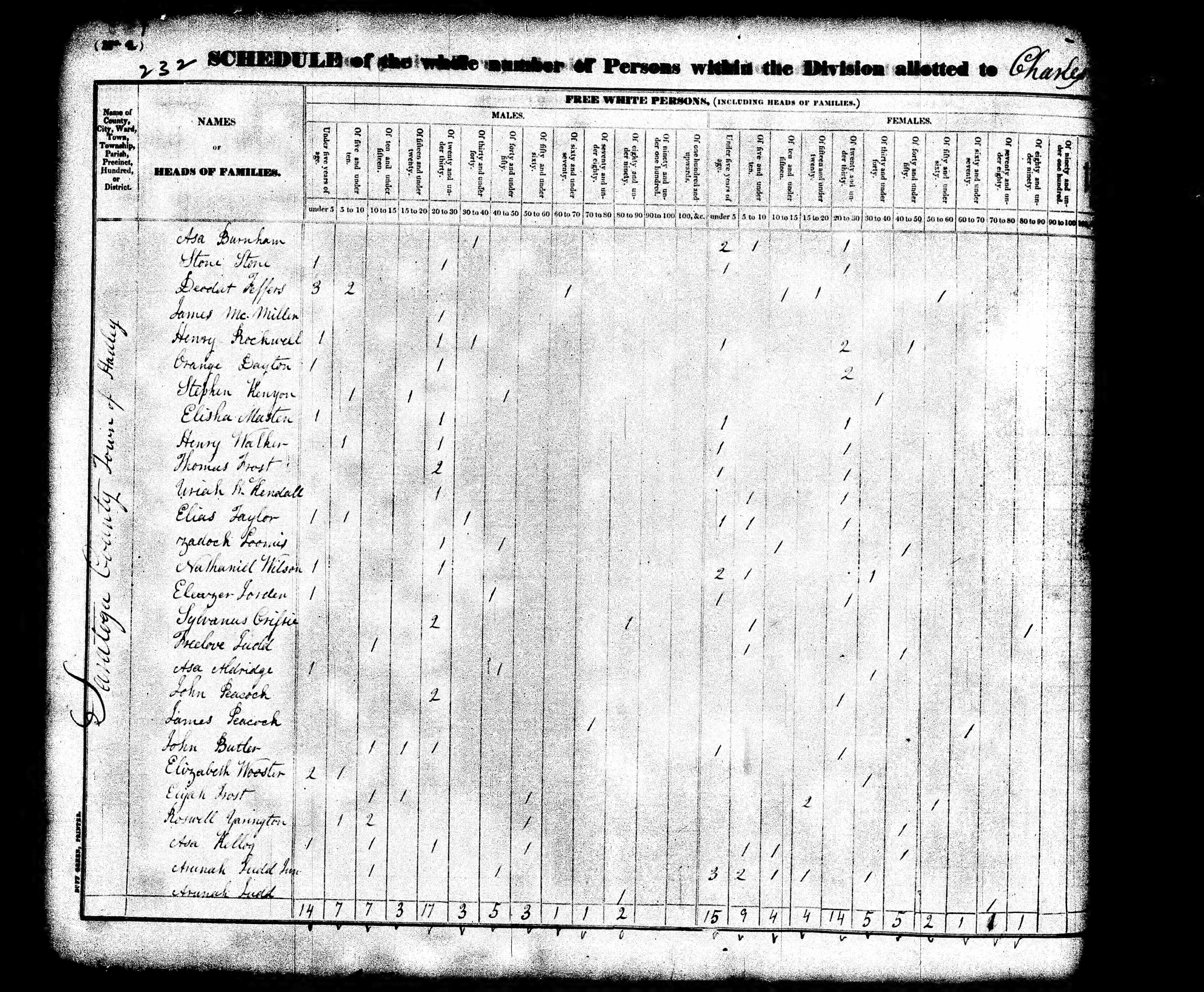 1830 US Census, Hadley, Saratoga, New York (Courtesy Ancestry.com)
