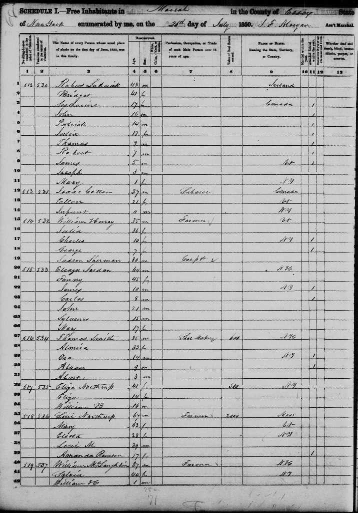 1850 US Census, Moriah, Essex, New York (courtesy Ancestry.com)