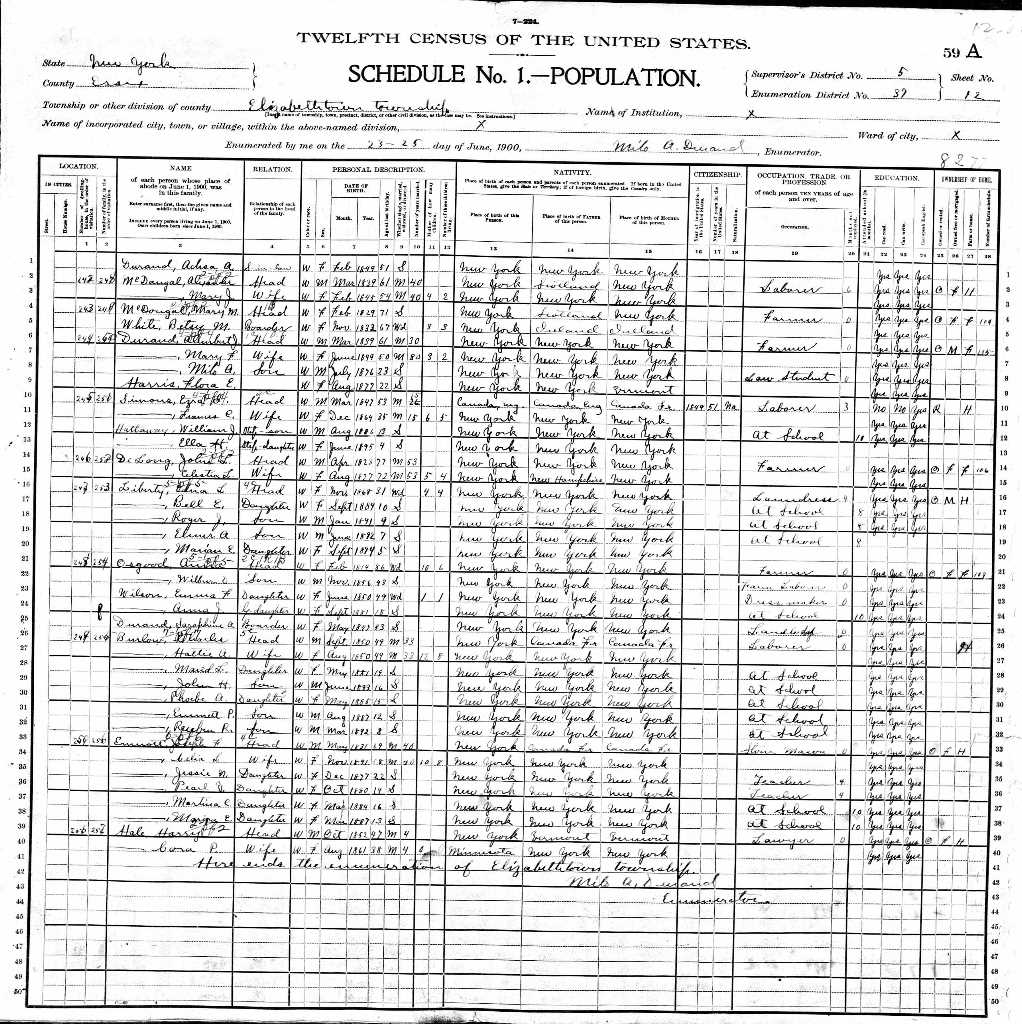 1900 US Census, Elizabethtown Township, Essex, New York (courtesy Ancestry.com)