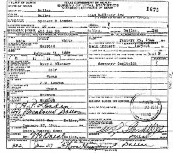 Spencer London death certificate (provided by Ancestry.com)