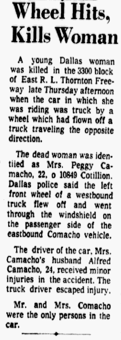 Peggy Camacho Accident (Provided by Genealogybank.com)