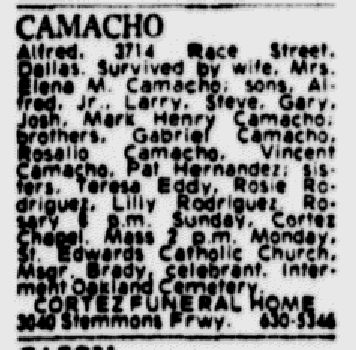 Alfred Camacho Obituary (Provided by Genealogybank.com)
