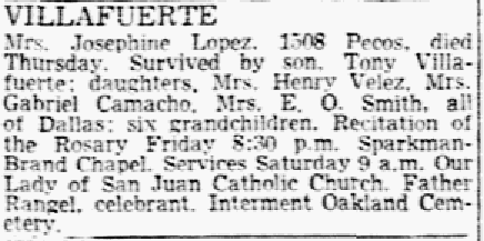 Josephine Villafuerte Obituary (Provided by Genealogybank.com)