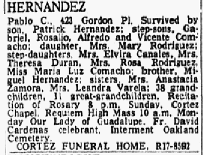 Pablo Hernandez Obituary (Provided by Genealogybank.com)