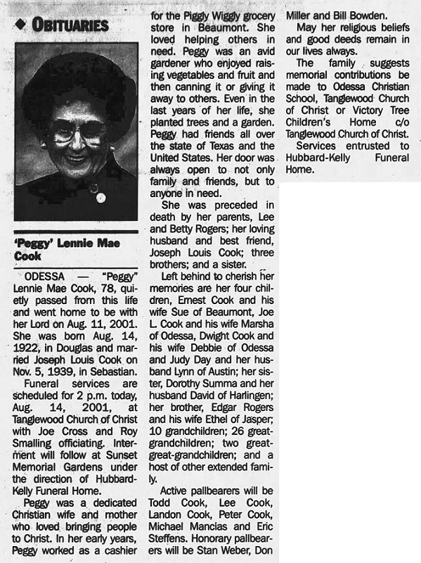 "Peggy" Lennie Mae Cook (Provided by Newspapers.com)