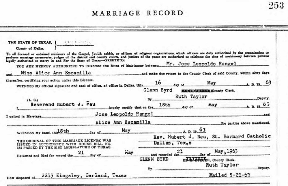 Jose & Alice Marriage License (Provided by Ancestry.com)