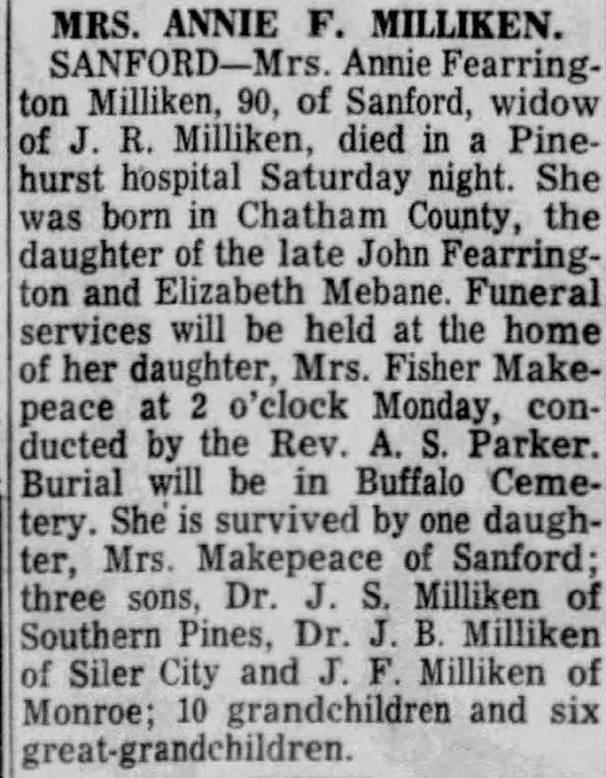 Annie Fearrington Obituary (Provided by Newspapers.com)
